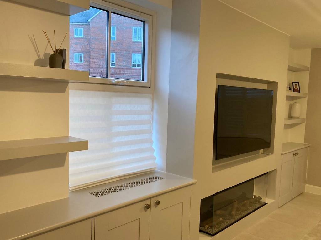 Seamlessly Integrated Electric Fireplaces: We can incorporate an electric fireplace into your bespoke media wall, adding both warmth and elegance to your living space. Our designs ensure that the fireplace becomes a harmonious focal point, blending effortlessly with your storage and entertainment needs. The integration of an electric fireplace not only enhances the aesthetic appeal but also provides a cosy ambiance, creating a perfect balance of style and comfort in your home.