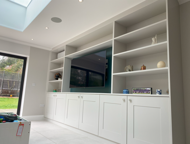 Tailored Storage Solutions: Create a captivating focal point for your media, enhanced by our bespoke storage solutions designed to accommodate all your belongings. Our media walls are crafted to maximise available space, effectively meeting your storage needs while keeping everything organised.