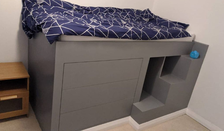 Beds Built Over Bulkheads: We maximise bedroom space by custom-building beds that ingeniously incorporate bulkheads, providing additional storage underneath. These beds are perfect for making the most of every inch of space in your bedroom, especially in rooms with unconventional layouts.
