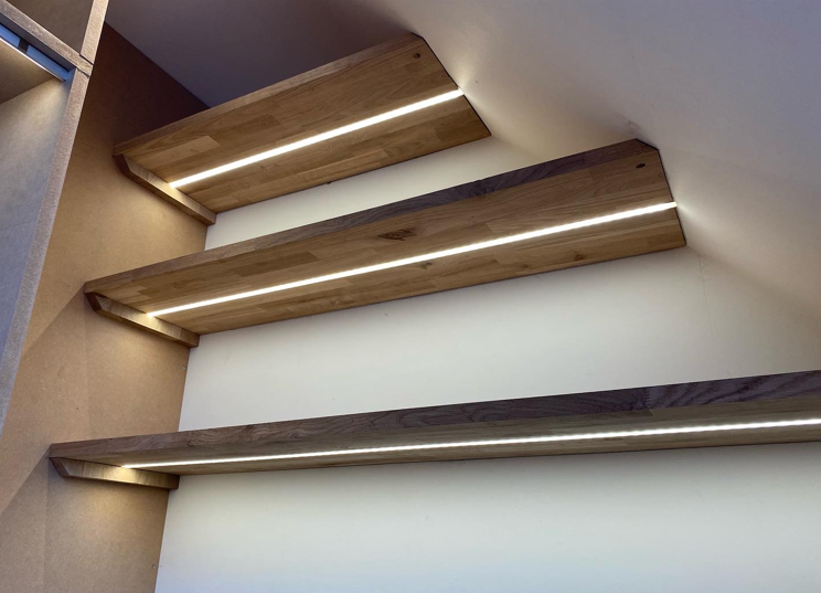 Bespoke Shelving: We install bespoke shelving solutions for alcoves, nooks, and irregular spaces, maximising storage potential while enhancing the aesthetics of our clients’ homes. Each piece is designed to blend seamlessly with your existing decor, ensuring a cohesive look. Our shelving can also include integrated lighting, adding both functionality and a touch of elegance to your space.